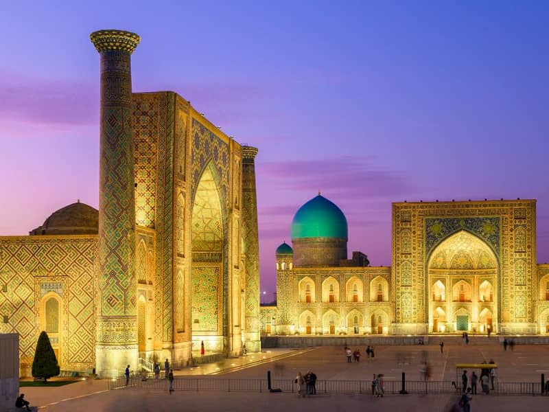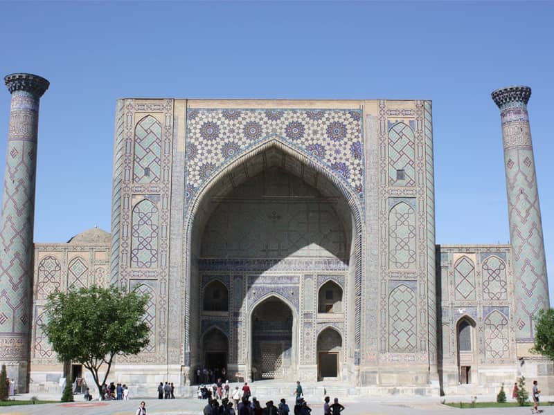5 – Dan je posvećen obilasku najznačajnijih historijskih lokaliteta Samarkanda. Posjećuje se veličanstveni trg Registan s tri monumentalne medrese, zatim džamija Bibi-Khanum te nekropola Shah-i-Zinda, jedno od najsvetijih mjesta u gradu. Noćenje u Samarkandu.